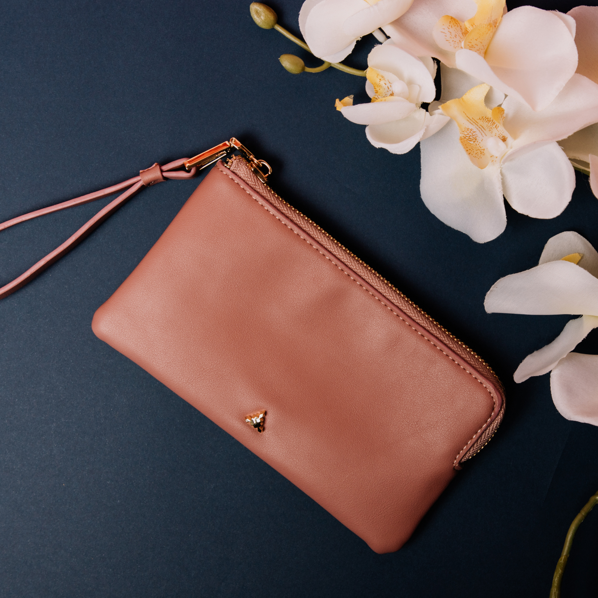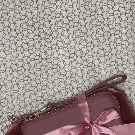 Set 2 en 1 Cosmetiquera + billetera con cierre que cuenta con maneral y tarjetero interior. Ideal para tener un match perfecto en tus accesorios.